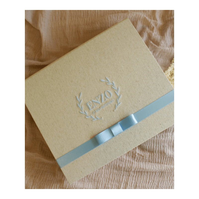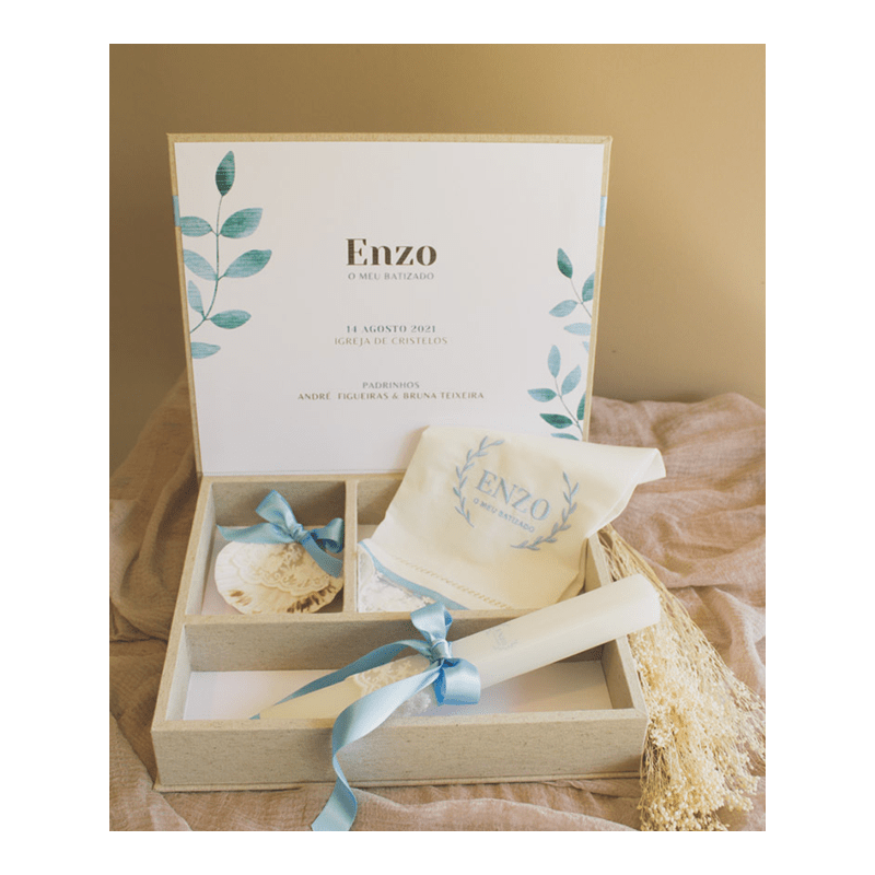 Don't forget to save your customization to be able to add to cartCaixa com laço e bordado “O Meu Batismo” para guardar a vela, a tolha e a concha do Batismo