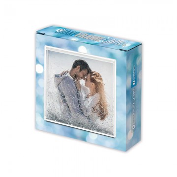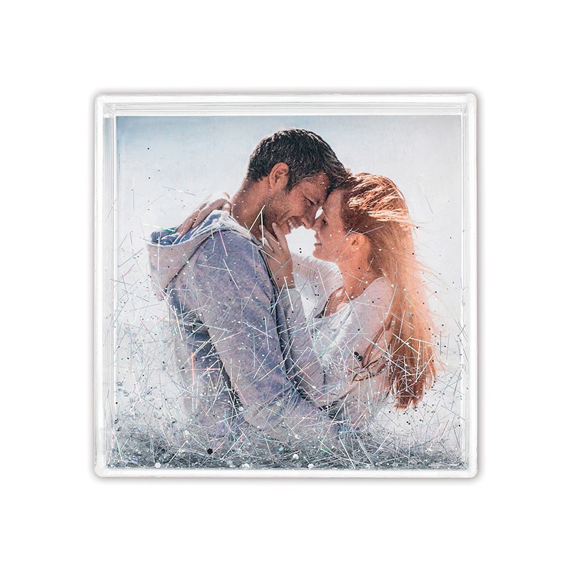 Bola de neve com formato cilíndrico e flocos de neve no interior.