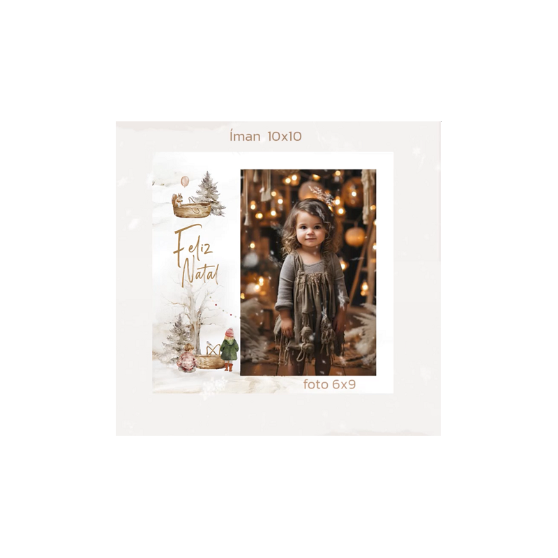 Bola de neve com formato cilíndrico e flocos de neve no interior.