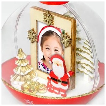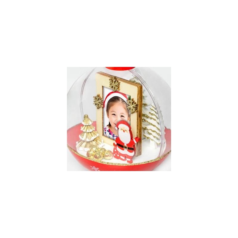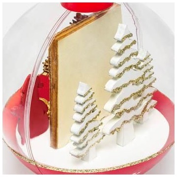 Bola de neve XXL em formato cilíndrico com flocos de neve no interior.