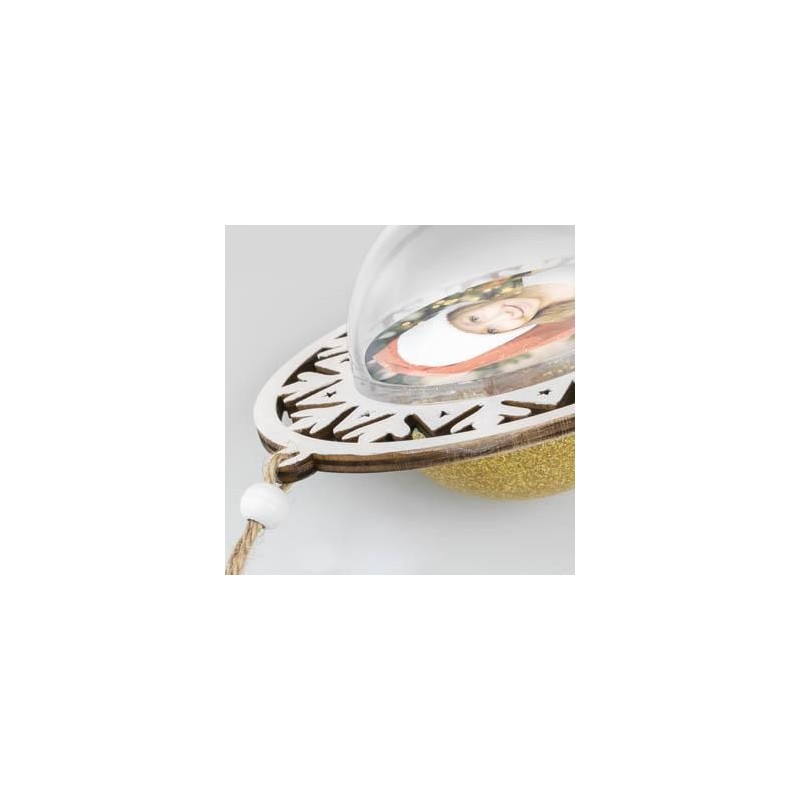 Bola acrilica com rebordo em madeira 12×13