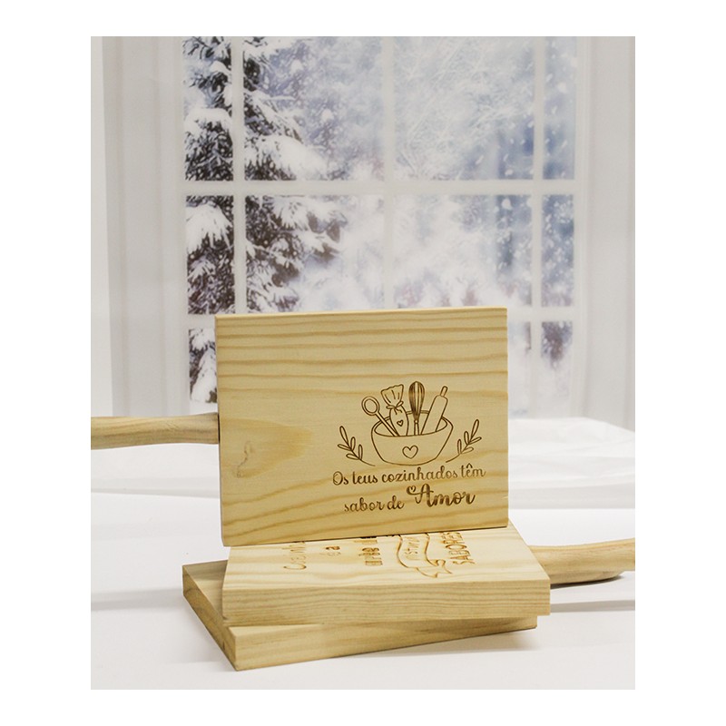 Don't forget to save your customization to be able to add to cartTabua de madeira com gravação a laser.
