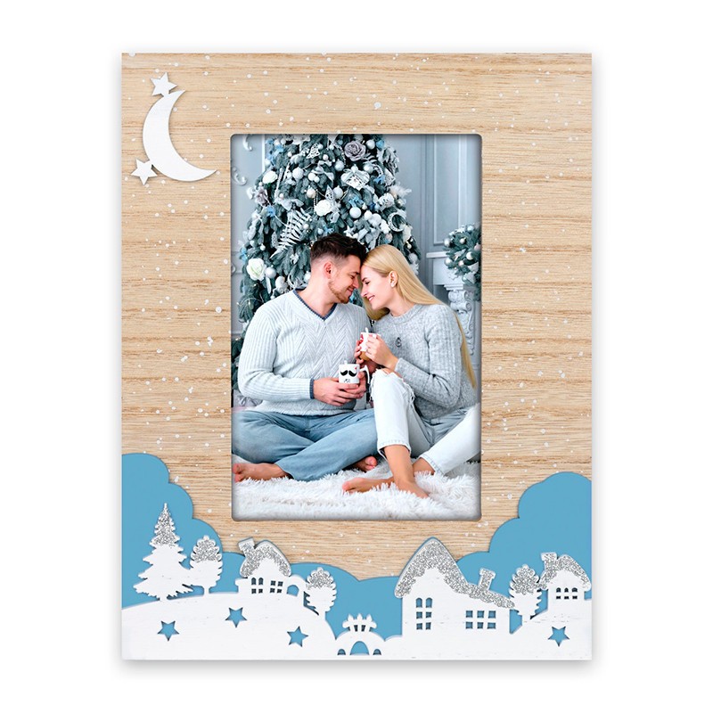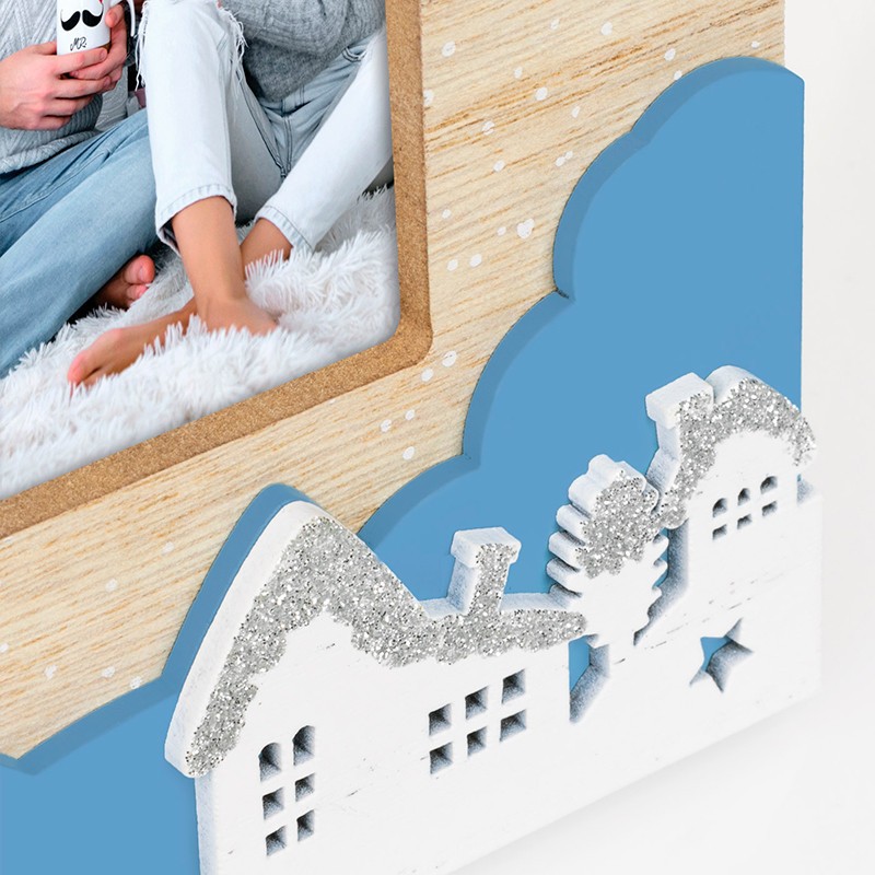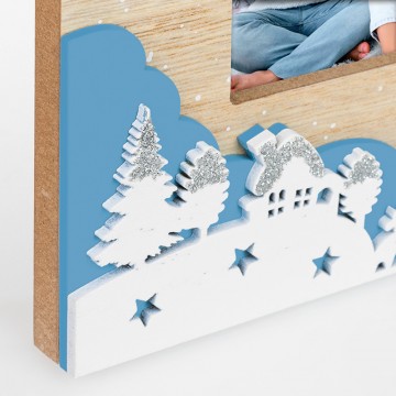 Moldura de mesa, de cor natural, decorada com tema Natalício.