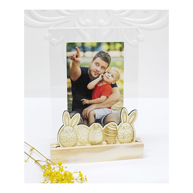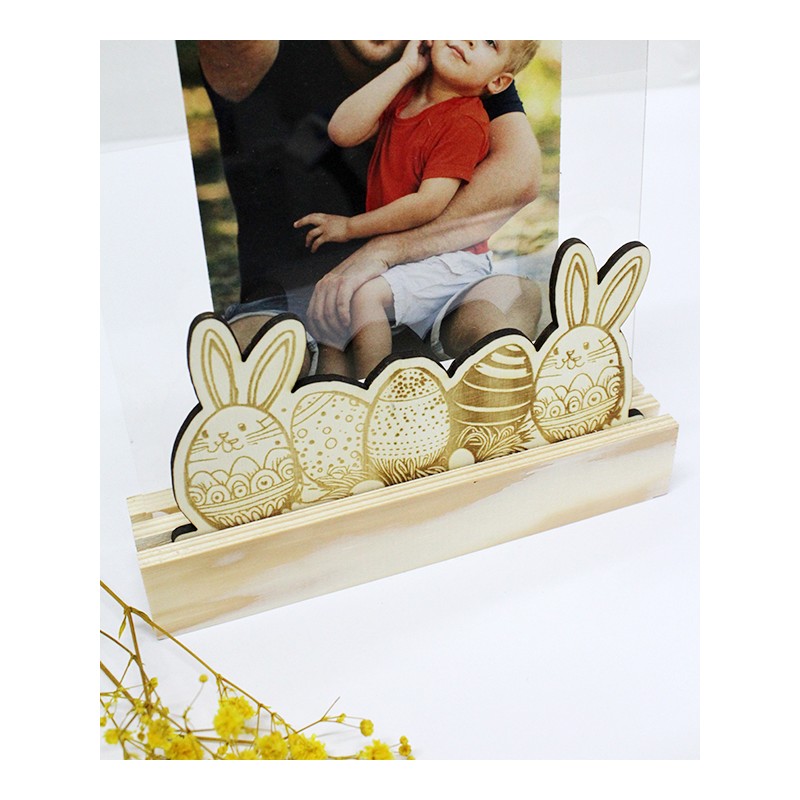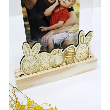 Base de madeira com ovos da Páscoa com acrílico para 1 fotografia 15x20cm